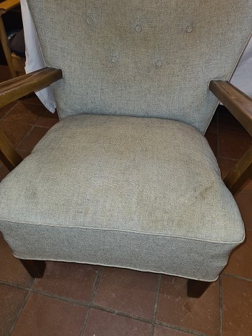 Dansk møbelsnedker overpolstret lænestol i uldstof m. stel af bejdset bøg.