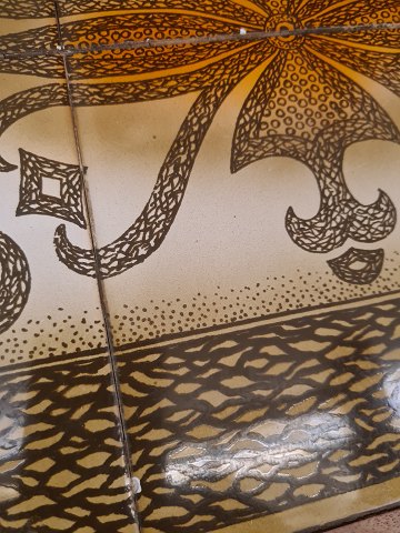 Indskudsborde fra 1970'erne i teak og med kakler. Fremstår pæne og stabile dog med bitte små afslag på kakler på det største bord.
